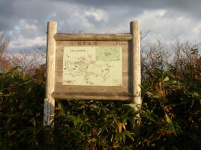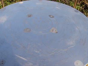 | 白兀山の山頂にはコースのガイドや祠、小さな展望台があり、展望台の上には方位盤がある。 |