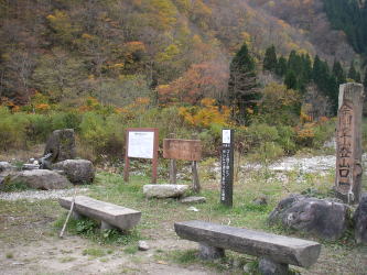 | 11/05に栃谷の登山口に行き、6日に登る予定だったが雨が降り断念して能登半島の観光に行った。だが後で来るのは大変なので、医王山に登ってから再挑戦することにした。11時半頃には登山口に着き、天気は下り坂との予報だったので、その日の内に登った。 |