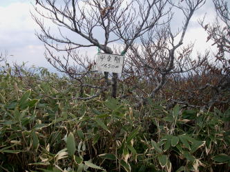 | 奥金剛らしいと思った山に行ってみると奥金剛と書いた標柱があった。 |