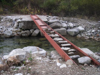 | 登山口脇の鉄の橋。登山はこの橋を渡ることから始まる |