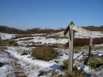 | 日本庭園は薄く雪に覆われている状態で、日本庭園に向かう道は初めのうちはトレースできたがそのうちトレースできなくなってしまった。どうも日本庭園の散策路のようで、散策路を通って御池岳に行く道はないようなので分岐に引き返し、御池岳に向かう。 |