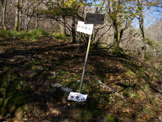 | コグルミ谷に下る途中にあった道標。丸山と書いてあるが、どの山のことか分からなかった、どうも御池岳の別名らしい。 |