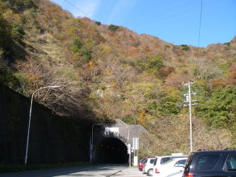 | 鞍掛トンネル東口の登山口の駐車スペース。15台ほど駐車できる。 |