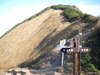 | 亀山峠から見る二本ボソに続く尾根。ススキの斜面がきれい。 |