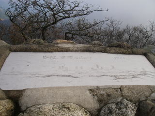 | 山頂には『宇陀、曽爾の山々』と書かれた石の展望図があり、展望が利けば倶留尊山がよく見えるのだろう。 |