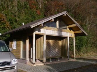 | 高見峠の登山口とトイレ。このほか休憩用のベンチや広い駐車スペースがある。高見峠に至る道は国道166の旧道だそうで、国道の高見トンネルの東口付近に出ることもできた。 |