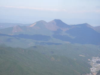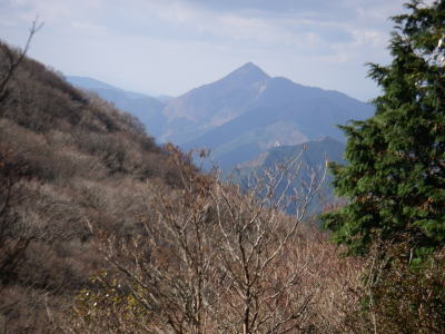 | 山頂からは倶留尊山が見えた。中央左が二本ボソ、右が倶留尊山。 |
