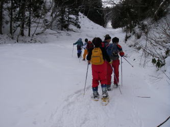 | スノーシューをつけて出発 |