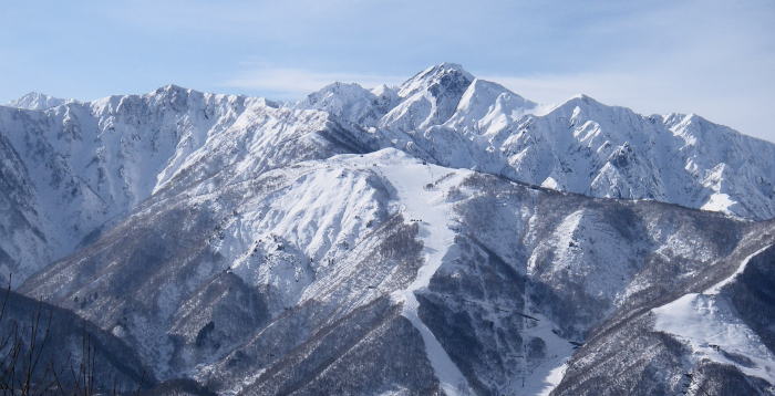 | 夢牧場から見る、唐松岳、白馬鑓ヶ岳、杓子岳、白馬岳 |