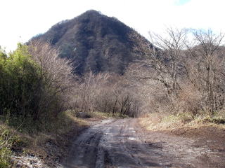 | 塔ノ峰に向かう道は送電線の鉄塔付近で一旦車道に下りる |