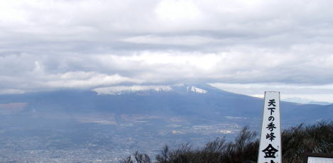 | 金時山から見る富士山は雲に覆われ、裾だけが見えた |