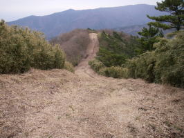 | 明星ヶ岳から塔ノ峰に向かう道。防火帯のように藪が幅広く刈られている。 |