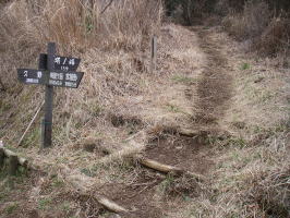 | 夕日の滝への分岐を見送り、金太郎ハイキングコースと足柄峠ハイキングコースの分岐に着いた頃には少し雲が出てきたが、すぐに雲は消えると思っていた。 |