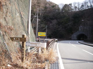 | 大滝橋バス停付近の登山口。近くに駐車スペースはなさそう。 |