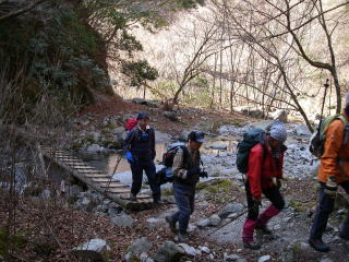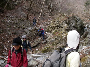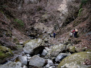 | 畦ヶ丸からの下りの沢の中を歩くところでは一部踏跡が不鮮明になっているところもあった。 |