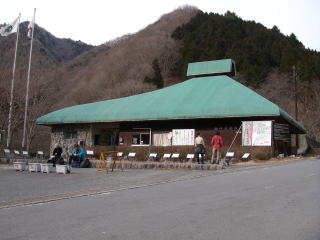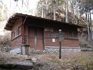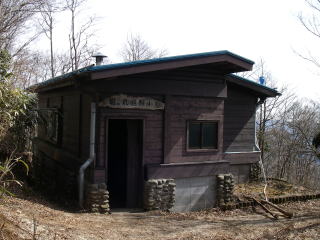 | 畦ヶ丸避難小屋。避難小屋に入るよりも、前のベンチで日向ぼっこをしながら昼食を食べる方が気持ちが良いというくらいに穏やかな好天に恵まれた。 |
