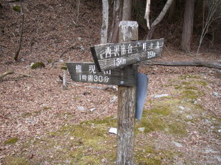| 権現山分岐。ここまで来れば西丹沢自然教室は近い。 |
