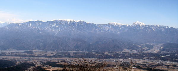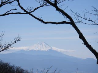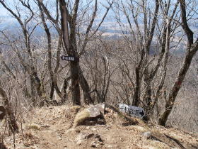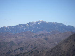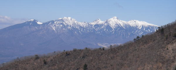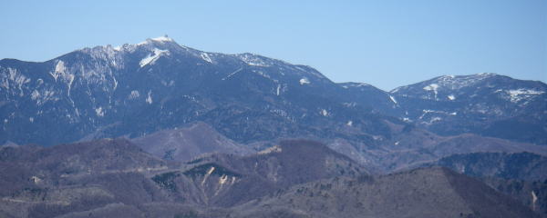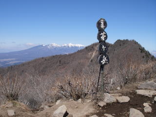 | 3〜4年前に登ったときにも雲ひとつない晴天に恵まれ眺望を堪能しました。その時は山頂周辺の木が伸びて視界が遮られて残念だったのですが、今回は晴天に恵まれた上、視界を遮らないように山頂の樹木を剪定してしてあったので八ヶ岳、、アルプス、奥秩父、富士山などをくっきりと見ることができました。 展望の良いことで知られた山頂が樹木の生長により展望が得られなってしまったという話はよく聞きます。対応も様々です。樹木の生長にまかせそのままにする、展望台を設ける、剪定するなどです。剪定するのは植生の保護の観点からは問題があるかも知れませんが、山頂に立って良い眺望が得られるのはうれしいものです。 |