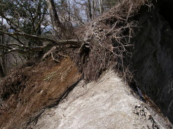 | 分岐に戻って畦ヶ丸に向かうとすぐに崩落地が現れる。 |