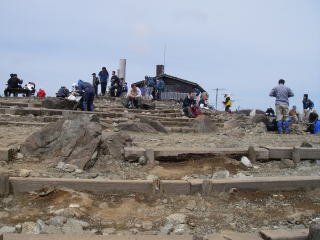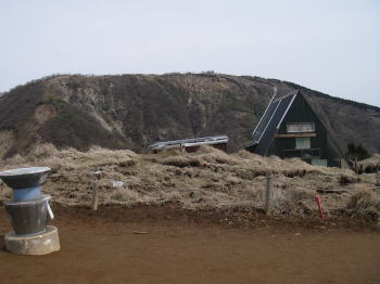 | 鍋割山。小屋の前のテーブルでお湯を沸かしてカップ麺を食べる。 |