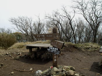 | 烏尾山山頂。背景は三ノ塔。霜どけでドロドロになっていることの多いここでもすっかり乾いていた。 |