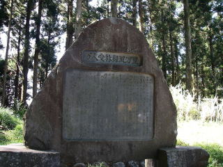 | 『万人愛林緑風万里』とあり、この地域で江戸時代の初期から地域の住民が共同で造林を行ってきた歴史が書いてある。建立は平成七年だが、近くには古そうな小さな祠もあり、牛首は昔の造林作業の拠点だったのかも知れない。 |