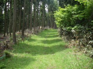 | 山道にはいると気分も落ち着き、こんな草原の道に出会うとホッとします。 |