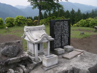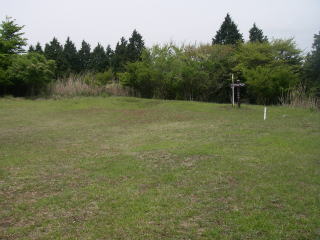| シダンゴ山山頂。草地の広場のようになっていて、シダンゴ山由来という石碑があり、シダンゴという言葉についての説明がある。 |