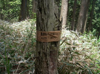 | シダンゴ山に至る尾根にはしっかりした道標がある |