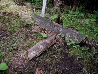 | 秦野峠分岐の道標。朽ちてはいるがちゃんと読める。 |