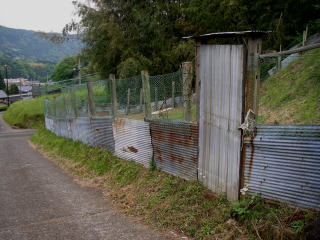 | 茶畑には柵はないが、他の畑にはイノシシの害を防ぐために柵がしてある。農家にとってはイノシシの害を防ぎながら作物を育てるのはたいへんな苦労があるだろう。 |