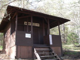 | 池の茶屋林道終点の登山口にある休憩所。トイレ付き。 |