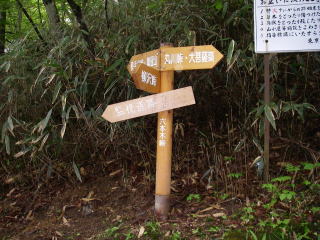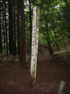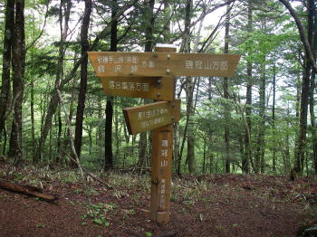 | 六本木峠の道標。ここで大菩薩嶺に行く道と鶏冠山に行く道が分岐する。 |