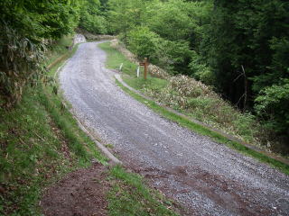| 名前に惹かれて行ってきましたが、コースの大部分はなだらかなアップダウンの道で公園の遊歩道のようでちょっと拍子抜けです。天気が良ければ新緑を楽しみながら気楽に歩けそうですが、今にも降りそうな曇天で薄暗く新緑の鮮やかさに欠けていました。 |