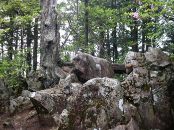 | 鶏冠山の道標。鶏冠山はすぐそば。 |