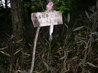 | 牛王院下の分岐。ここから七ツ石尾根ルートで牛王院平に向かう。道標には牛王院平に至ると書いてある。 |