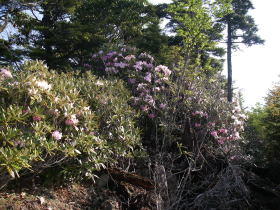 | 笹藪のルートを過ぎると、奥秩父らしくシャクナゲが現れる。シャクナゲのトンネルになっているところもあり楽しい。 |