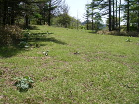 | 牛王院の草原。ここが牛王院平かと思い、下山するときに少し奥までいってみたが、草原が続くだけで何もなかった。少し花があり撮影した。 |
