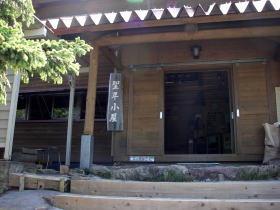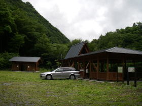 | 聖光小屋の前には一般駐車場、後には車中泊、テント泊用の駐車場がある。後者の駐車場には炊事場、屋根付きの食事用テーブル、トイレがある。飲み物のベンダーもあり、350mlの缶ビールは400円だった。 聖光小屋の入口の扉にはカーテンが掛かり、ひっそりとしていて使われていないような感じだったが、管理人は滞在していた。 車内泊料金500円を払い一般駐車場で車内泊。夜半にはだいぶ激しい雨が降り、聖岳に向かえるかどうかが心配になる。 |