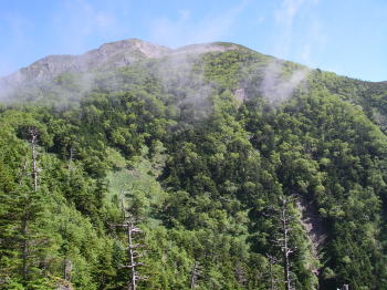 | ガスがかかっているが聖岳もだんだんとよく見えるようになってきた |