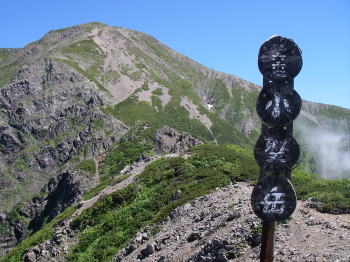 | 奇岩竹内門、茶臼小屋分岐を経て茶臼岳へ。茶臼岳の山頂付近にはタカネイバラが咲いていた。 |