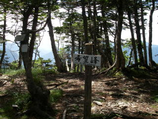 | 易老岳。この道標がなければ山頂とは気づかないような地形 |