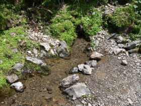 | 光小屋にほど近い静高平とそこにある水場。水がわき出ている。 |