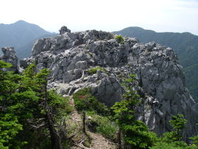 | 奇岩竹内門を前景に茶臼岳と仁田岳 |