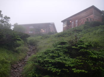 | 光小屋を発つときには雨がふりガスがかかっていた。 |