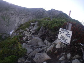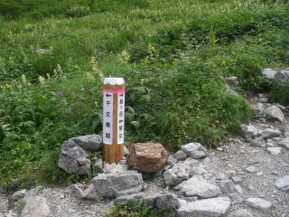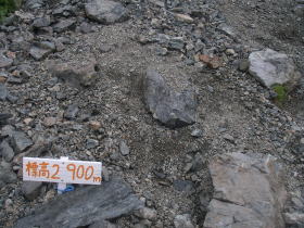 | 標高2,900mの道標が現れれば、飛騨乗越は近い。 |