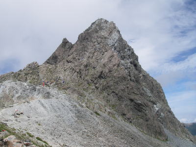 | お盆の連休で山に登る人が多い時期が終わるのを待って、そのうえ歩く人のあまり多くなさそうなコースを選んで行きました。狙い通り槍ヶ岳も空いていました。 |