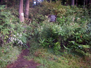 | 戸隠牧場に近い大橋林道入口の駐車スペースから林道を2km程入ったところにある登山口 |