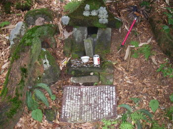 | 山頂の祠。斑尾山の薬師様は十三体といういわれが書いてある。 |
