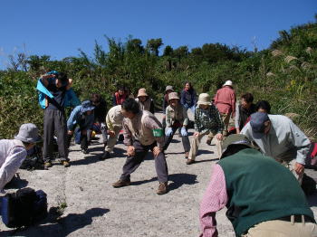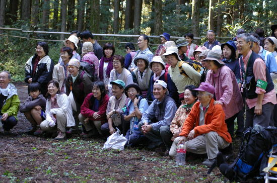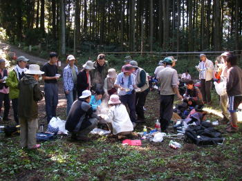 | 50名近くの大パーティーになり、静かな加波山を私たちが賑やかにしているという状態でした。快晴に恵まれ、暑くもなく寒くもないという絶好のハイキング日和で、豚汁を作って食べたりアケビを採ったりなどと加波山を満喫してきました。 |